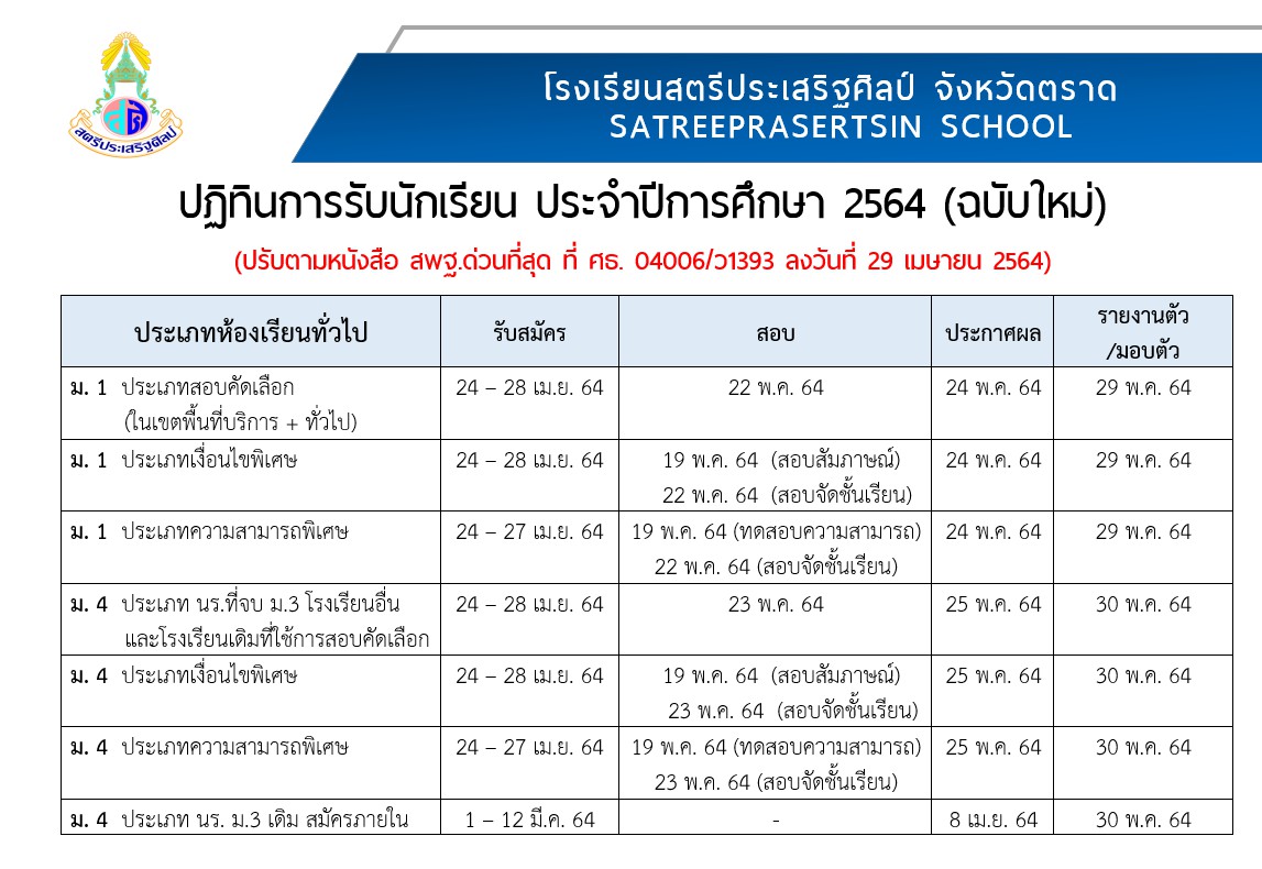 ระบบรับสมัครนักเรียน โรงเรียนสตรีประเสริฐศิลป์ ปีการศึกษา 2564